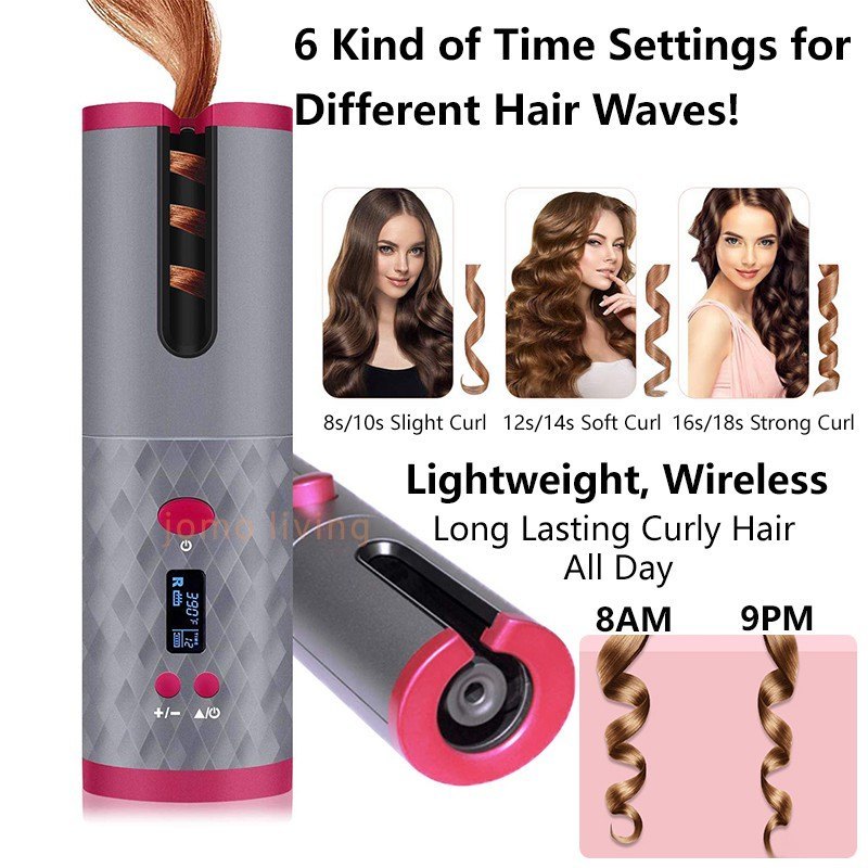 Cordless Auto Hair Curler with LCD Display β 6 Adjustable Temperature Settings