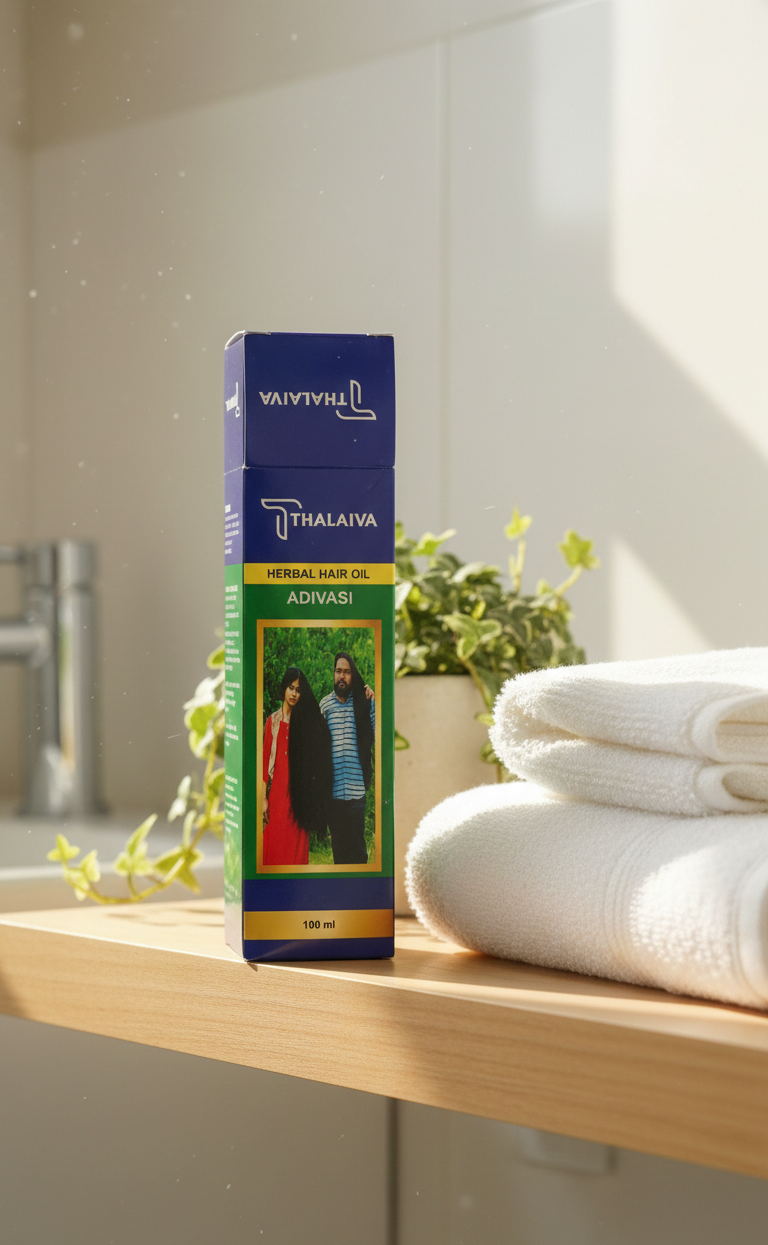 Thalaiva Adivasi Herbal Hair Oil is a 100% natural, Ayurvedic-inspired hair oil blend crafted to support hair strength, vitality, and growth without harsh chemicals. Formulated with a potent mix of traditional herbs and plant oils known for their rejuvenating effects, this oil nourishes the scalp, fortifies hair roots, and helps address common hair concerns like hair fall, weak strands, dullness, and dry scalp. Ideal for regular use, it brings the power of nature to your hair care routine for healthier, stronger, and more vibrant hair.